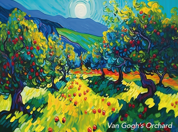 An Apple Orchard Under the Starry Night, Inspired by Van Gogh's Masterpiece.